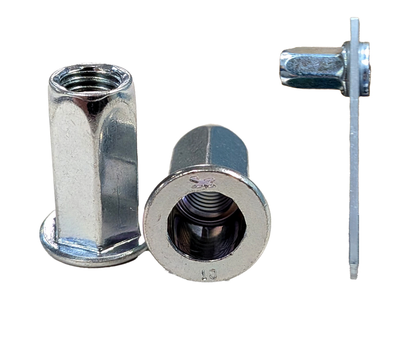 Available in sizes M5 through M12. Installed using standard hydro-pneumatic rivet nut tooling.