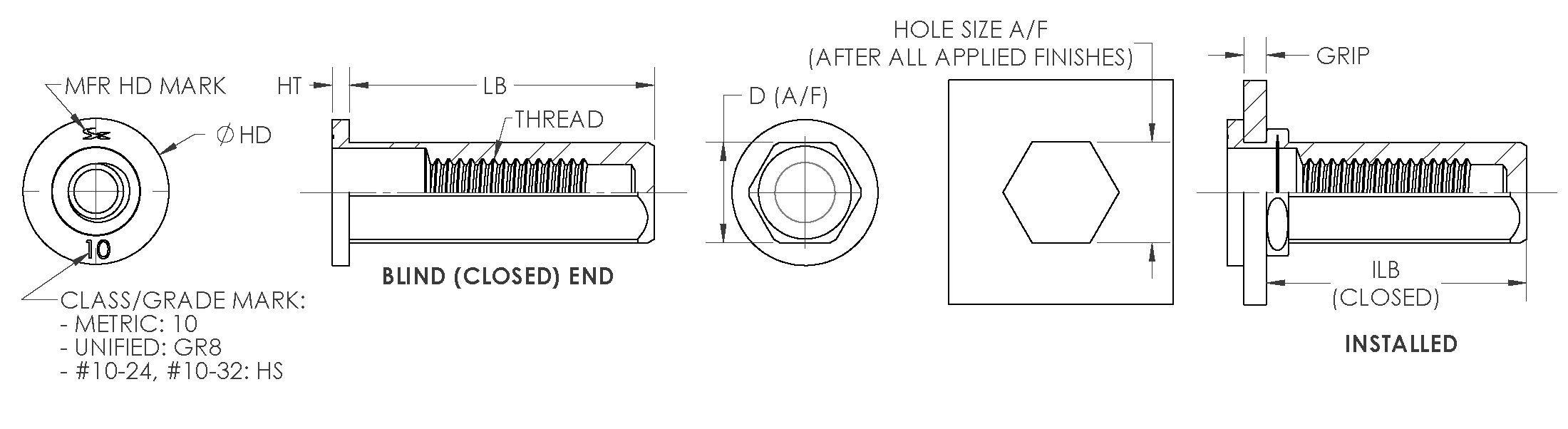 High Strength Hex Body Rivet Nuts Closed End (Metric)
